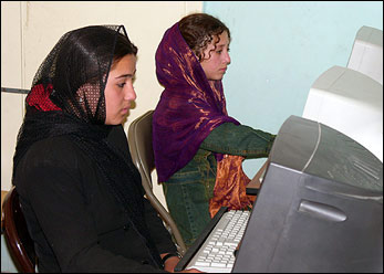 KABUL, Afghanistan, June 28 (UNHCR) - As he slowly presses the keys to spell out "I'm very happy working on computers" on the screen in front of him, Mohammed Fardine could be any 12-year-old boy enjoying a bit of free time in the classroom. But unlike those more fortunate, when the course ends, he will return to his job as a carpet weaver to help support his family.