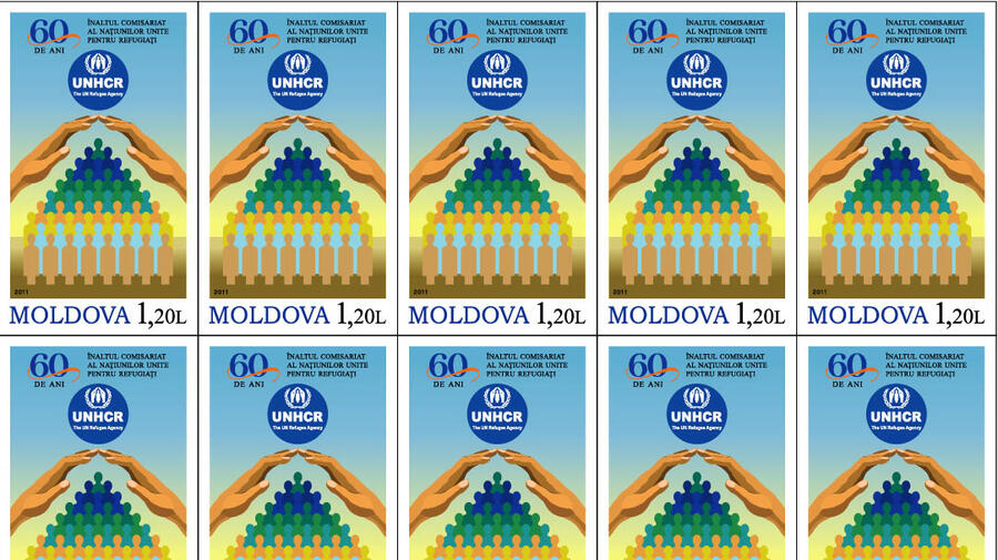 The colourful stamp, which has a value of 1.20 Moldovan Leu, depicts a pyramid of human figures covered by the UNHCR protecting hands that form part of the agency's official logo. Fifty thousands stamps have been printed as well as 500 special first-day covers.