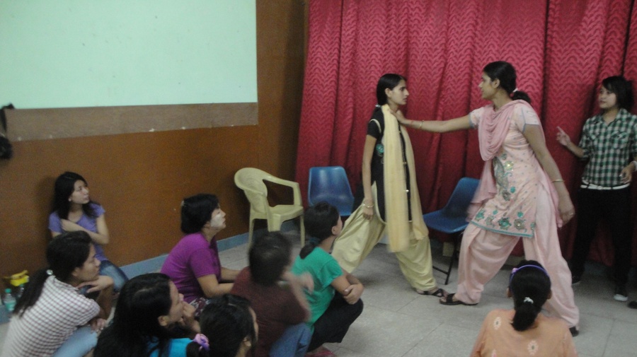 Once through the door, in the offices of a refugee organization for Myanmar refugees, the anxious visitor was relieved to discover that it was only a group of 30 refugee women assaulting each other under the watchful eyes of Indian policewomen skilled in the arts of self defence.