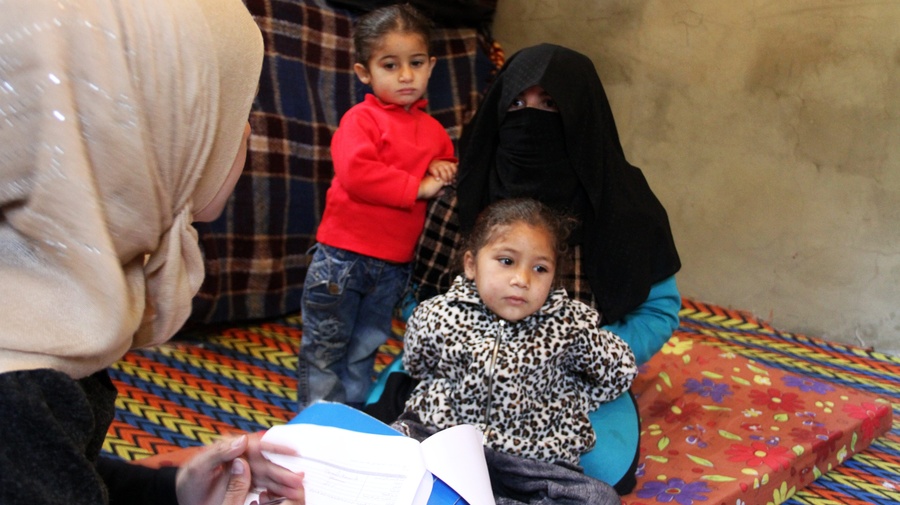 A Syrian family being registered as refugees in Halba, northern Lebanon.