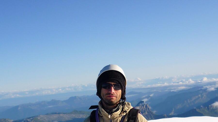 Nadjib Sirat at the summit of Mont Blanc. The former Afghan refugee now has Mount Everest in his sights.
