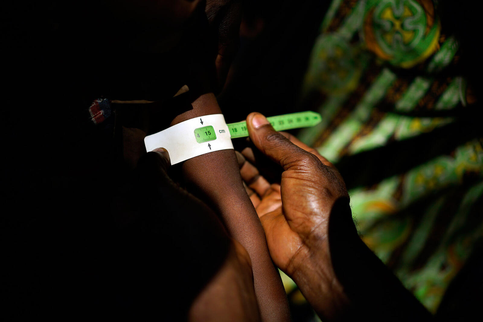 During the evaluation, the health and nutrition teams conduct a preliminary nutrition screening by measuring the mid-upper arm circumference of refugees. In the five spontaneous settlements we visit, they find that 11.3 per cent of the pregnant and lactating women – and 27.4 per cent of the children – appear to be malnourished.