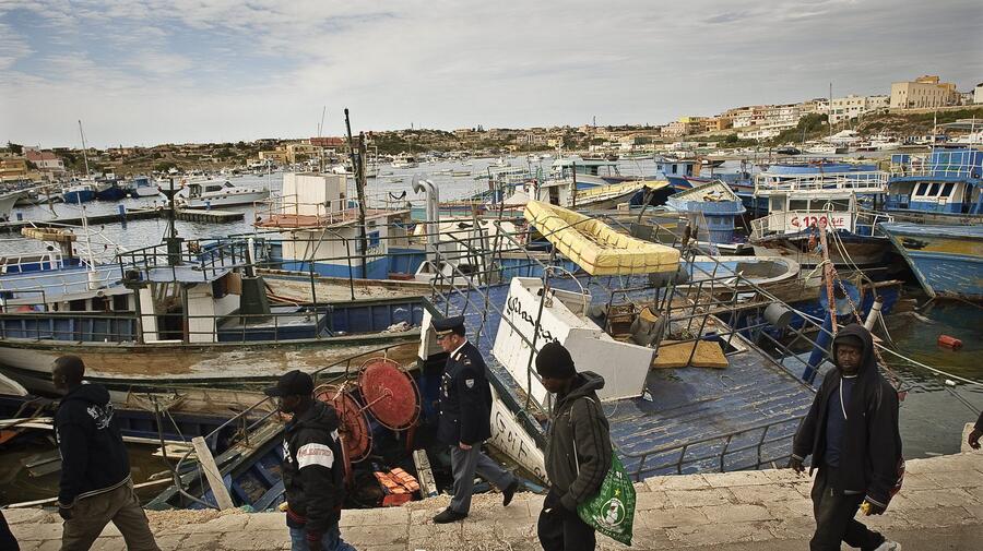 These people have just arrived by boat on Italy's Lampedusa Island after crossing the Mediterranean on a dilapidated boat.