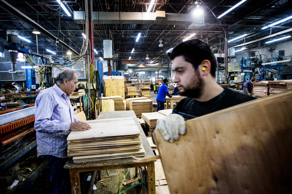 The 28-year-old is among 15 Syrian refugees starting their lives over with jobs at the Seatply Products Inc. factory in Montreal, Canada. Kevork has an affinity for such tasks. “In Aleppo, my father and I used to make truck parts,” he explains.