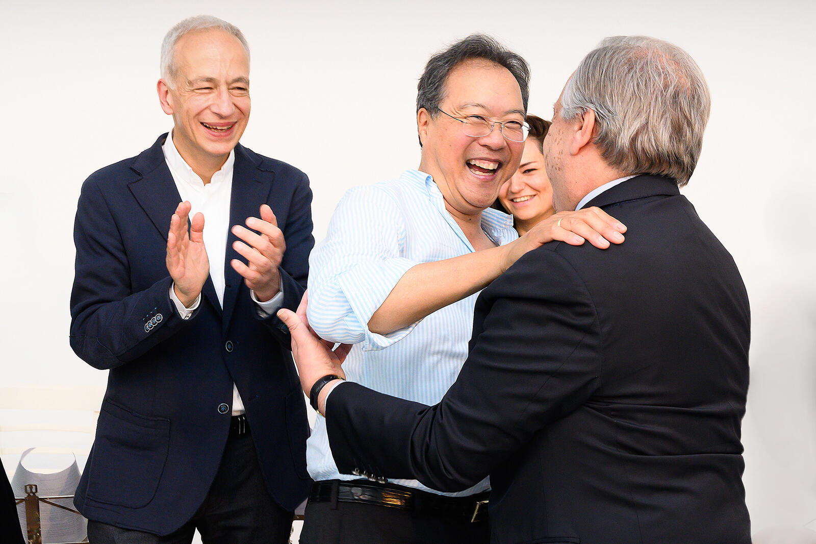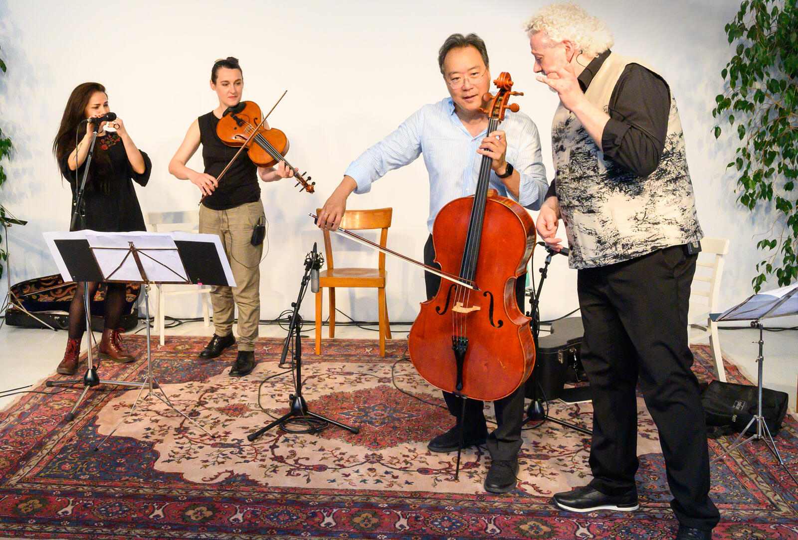 Eighty people including 10 refugees take part in a music workshop in the Austrian capital with Ma, who has won 19 Grammy awards