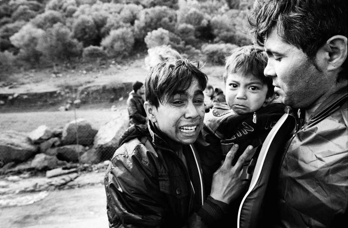 With fear etched on their faces following their journey by boat across the Aegean, an Afghan family arrives in Lesvos.