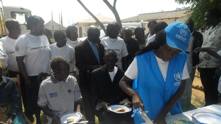 The celebration was organized by UNHCR, Zambian government officials and other refugees in the settlement. A beaming Salugardo was presented with a cake and several gifts, including a new hut, mattress, blankets, food and clothing.