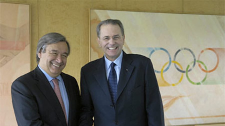 High Commissioner for Refugees António Guterres (left) meets International Olympic Committee President Jacques Rogge in Lausanne.