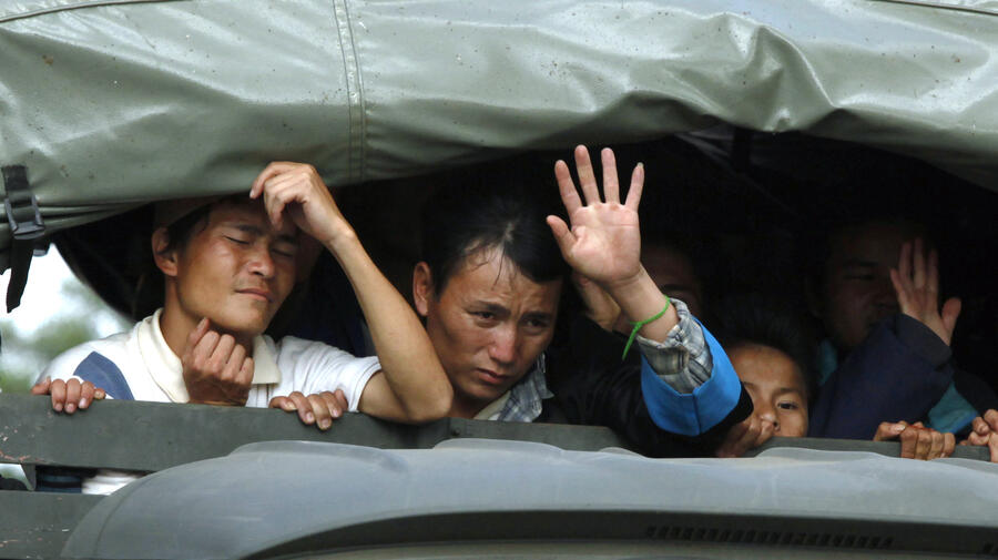 Ethnic Hmong stand inside a truck at the Ban Huay Nam Khao camp in Thailand's Phetchabun province before being forcibly repatriated to Laos.
