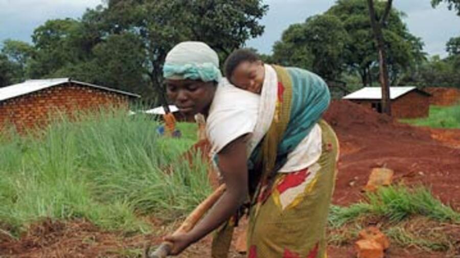 A refugee woman, one of the 1972 Burundians, takes part in construction work at a settlement in Tanzania. These settlements have become self-sustainable over the years.