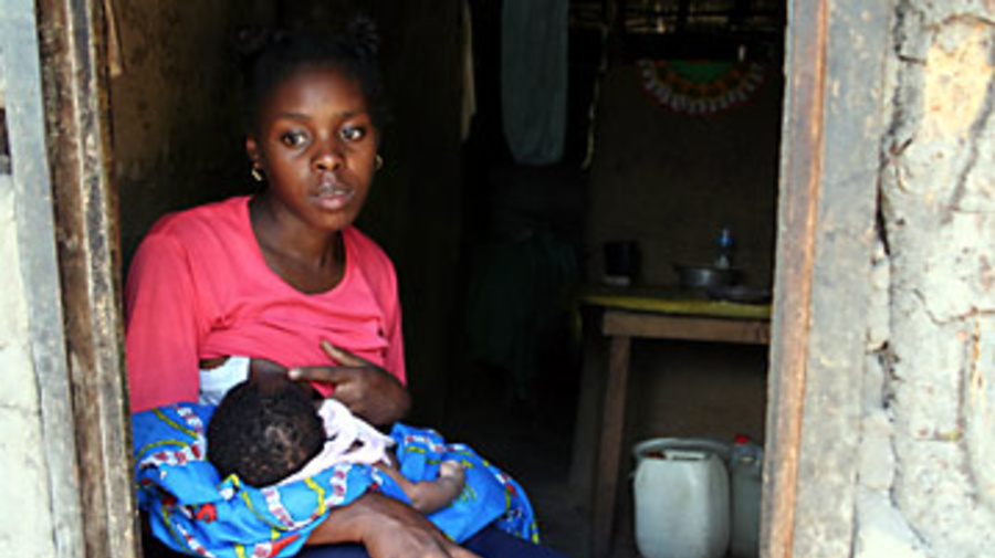 A young woman breastfeeds her child in Nangweshi Camp, which is soon to close after providing shelter for Angolans fleeing to Zambia since 2000.