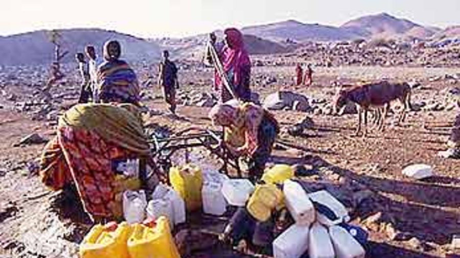 Somali refugees collecting water in Djibouti's Hol-Hol camp, which 231 of them left on the first organised convoy back to Somaliland on July 13.