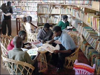 Stocked with 25,000 books on subjects ranging from the educational to the sciences and fiction, the library could be one of the best-stocked and biggest in a refugee camp in Africa. The library also has three computers for an Internet café, which, for a nominal fee, serves both the refugees and the host community in and around the settlement.