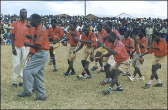 Malawians performing traditional dances in a gesture of harmonious co-existence with refugees.