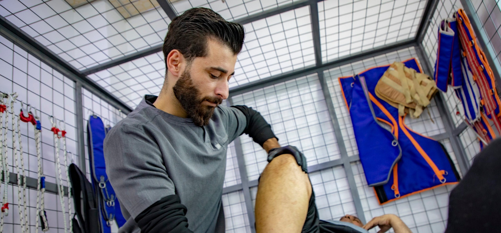يَعجّ مركز العلاج الطبيعي الذي يديره فواز، وهو لاجئ سوري يبلغ من العمر 25 عامًا في مدينة أربيل بإقليم كردستان العراق، بالمرضى المنتظرين دورهم لتلقي العلاج. يعمل فواز وزملاؤه العراقيون ثماني ساعات يوميًا، ستة أيام في الأسبوع، ويقدمون خدمات العلاج الكهربائي، والوخز بالإبر، والعلاج الجاف بالإبر، وغيرها من الخدمات الفسيولوجية لمساعدة اللاجئين والمواطنين العراقيين على تخفيف آلامهم الجسدية.