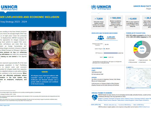 In Iraq, we work to support over 338,000 refugees and asylum-seekers. In addition, UNHCR supports efforts to find solutions for internally displaced people (IDPs), of whom some 110,000 live in 21 IDP camps. UNHCR’s work in Iraq aims at contributing to a situation in which forcibly displaced populations and stateless persons in Iraq are better protected and have full access to quality basic and protection services in public systems as well as access to economic opportunities.