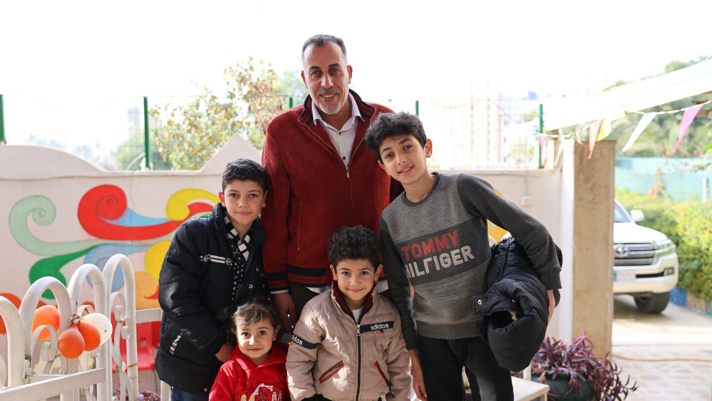 ئەبو فەیسەڵ و کوڕە گەورەکەی لە سەنتەری کۆمەڵگەیی. © کۆمسیاری پەنابەران/ حەمزە ئەلمومانی