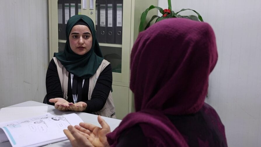 نەرمین حەمدی لە رێکخراوی وچان، هاوبەشی کۆمسیاری باڵای نەتەوە یەکگرتووەکان بۆ کاروباری پەنابەران لە بواری هاوکاریی تەندروستی دەروونیی. © کۆمسیار/ حەمزە ئەلمومانی