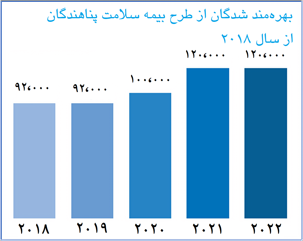 برای هشتمین دوره این طرح ، (از 6 اسفند ماه 1401 تا 5 اسفند ماه 1402)، کمیساریا 100٪ حق بیمه را برای حداکثر 95،000 پناهنده بسیار آسیب پذیر، شامل پناهندگان با بیماری خاص و خانواده هایشان، پوشش میدهد. سایر پناهندگان میتوانند با پرداخت حق بیمه سلامت، خود را بیمه کنند.