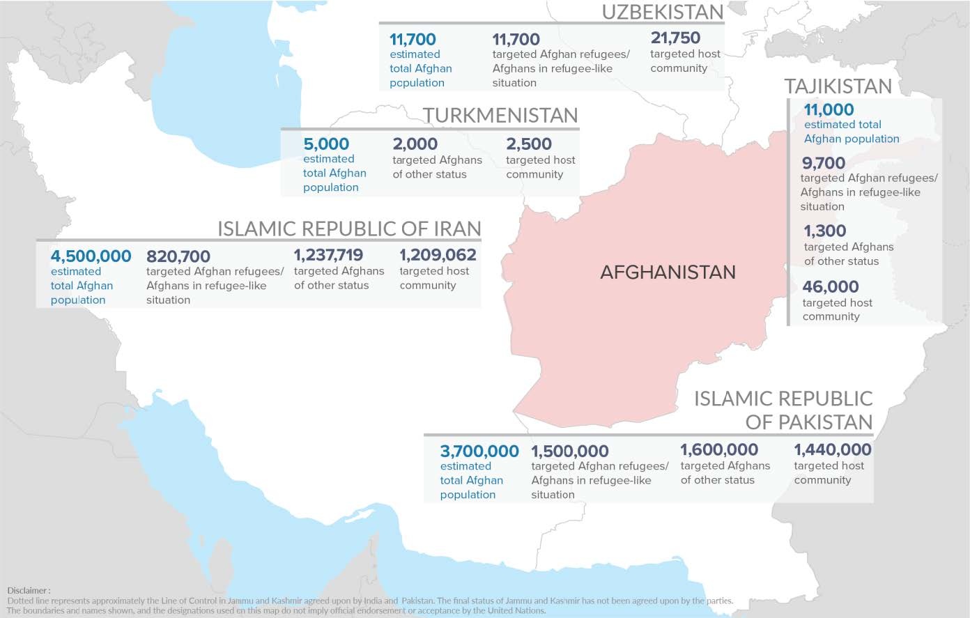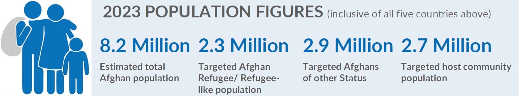 Refugee Response Plan Afghanistan: UNHCR and humanitarian partners launched their 2023 response plan to support 7.9 million people: 5.2 million Afghans - including refugees – and 2.7million of their local hosts in five neighbouring countries: Iran, Pakistan, Tajikistan, Turkmenistan, and Uzbekistan.