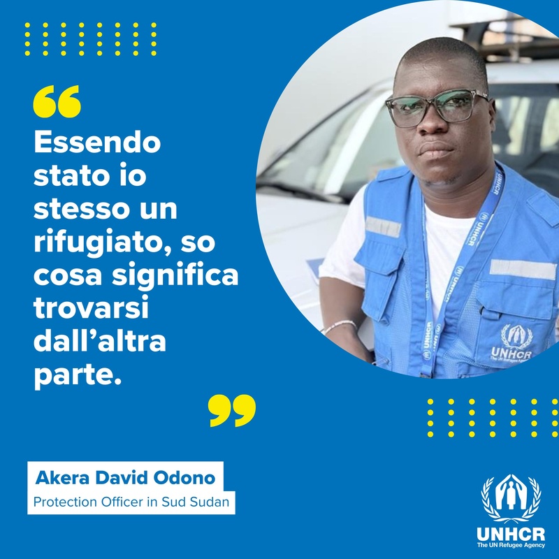 Ex-rifugiato diventato Protection Officer per l’UNHCR, Akera porta una prospettiva unica del nostro lavoro in Sud Sudan. Dal 2022 affronta con determinazione ed empatia rischi alla sicurezza, tagli ai finanziamenti e un numero sempre crescente di arrivi di persone rifugiate e sfollate. La sua storia ci ricorda quanto siano essenziali le voci dei rifugiati e come possano essere protagonisti nella risposta umanitaria.