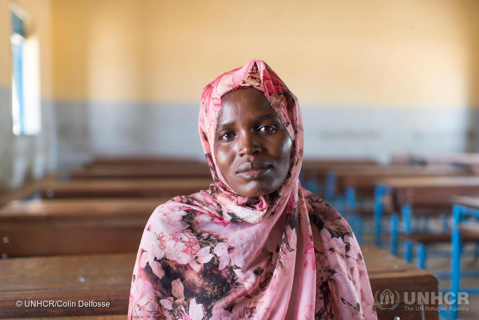Assaniah Ahmad Hussein, 28 anni, è un'insegnante della scuola elementare di Alnour - una delle due scuole del campo - e guida una classe di oltre 100 bambini di età compresa tra i 5 e i 7 anni. Originaria di Gnouri, nella regione sudanese del Darfur, Assaniah è arrivata a Kouchagine-Moura poco più di due anni fa con il marito e il figlio, dopo essere fuggita dalla violenza intercomunitaria.