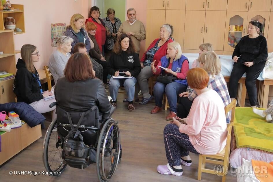 Parte del suo tempo è dedicato a visitare, insieme all'UNHCR, i centri di accoglienza dell'Ucraina occidentale e a offrire consigli su come adattarli e renderli più accessibili alle persone con disabilità. L'UNHCR contribuisce a finanziare i miglioramenti necessari. Inoltre, dà priorità alle persone con disabilità nel suo programma di assistenza in denaro multiuso.