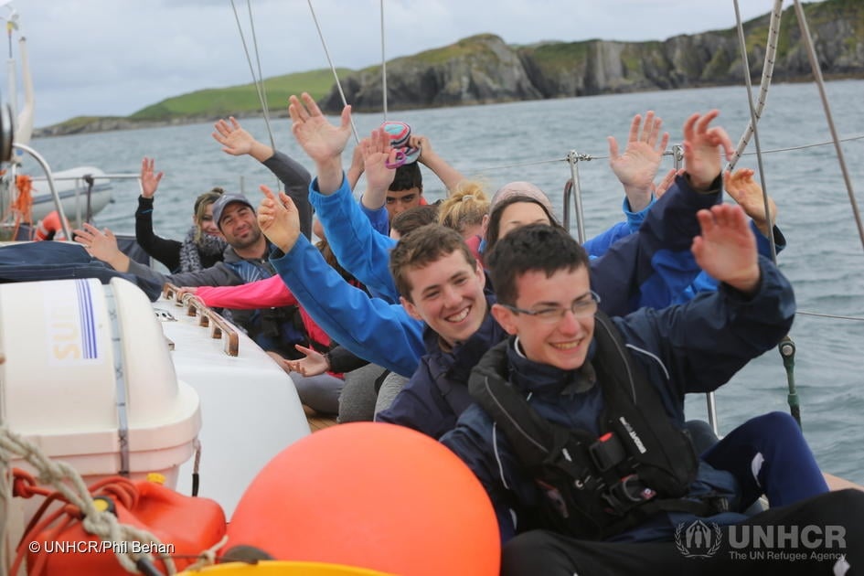 Giovani rifugiati e ragazzi irlandesi hanno passato una settimana in mare, imparando a manovrare una barca a vela di 70 piedi.