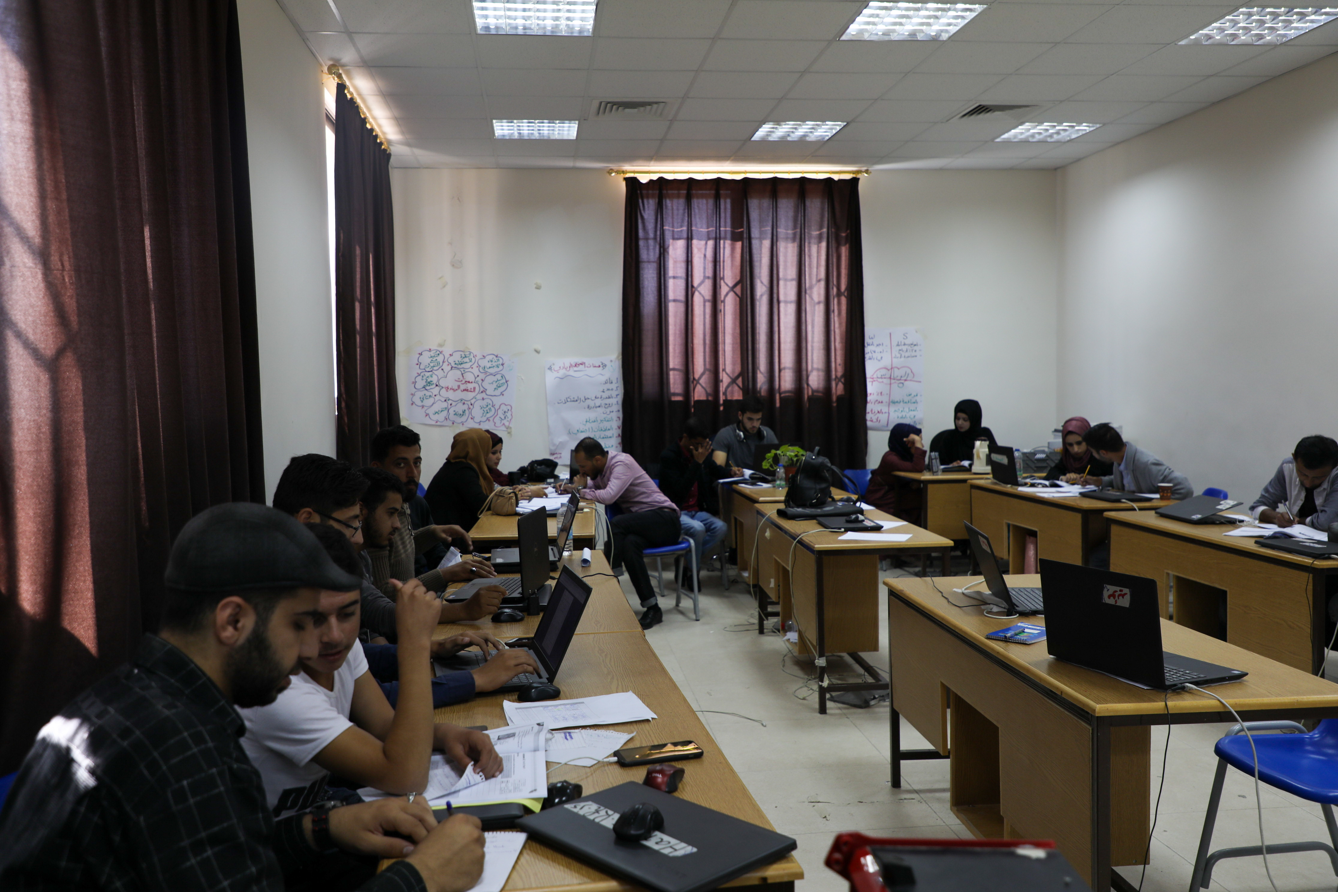 The coding class caters for a diverse range of students, aged between 17 and 39, male, female, Jordanian and Syrian © UNHCR Jordan