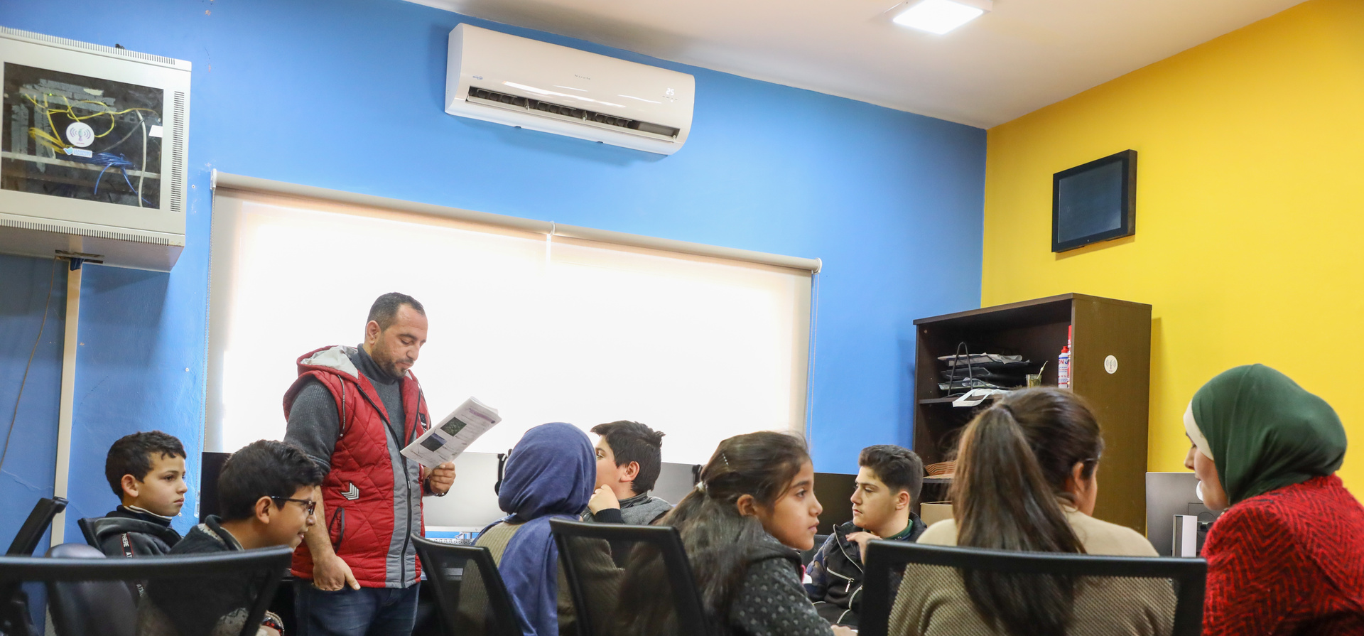 Mohammad, a Syrian refugee, has been teaching classes at the Connected Learning Hub for the last year. Every day 40 students, aged 13 to 17, pass through the doors, a mix of both Jordanians and refugees living in the local community.