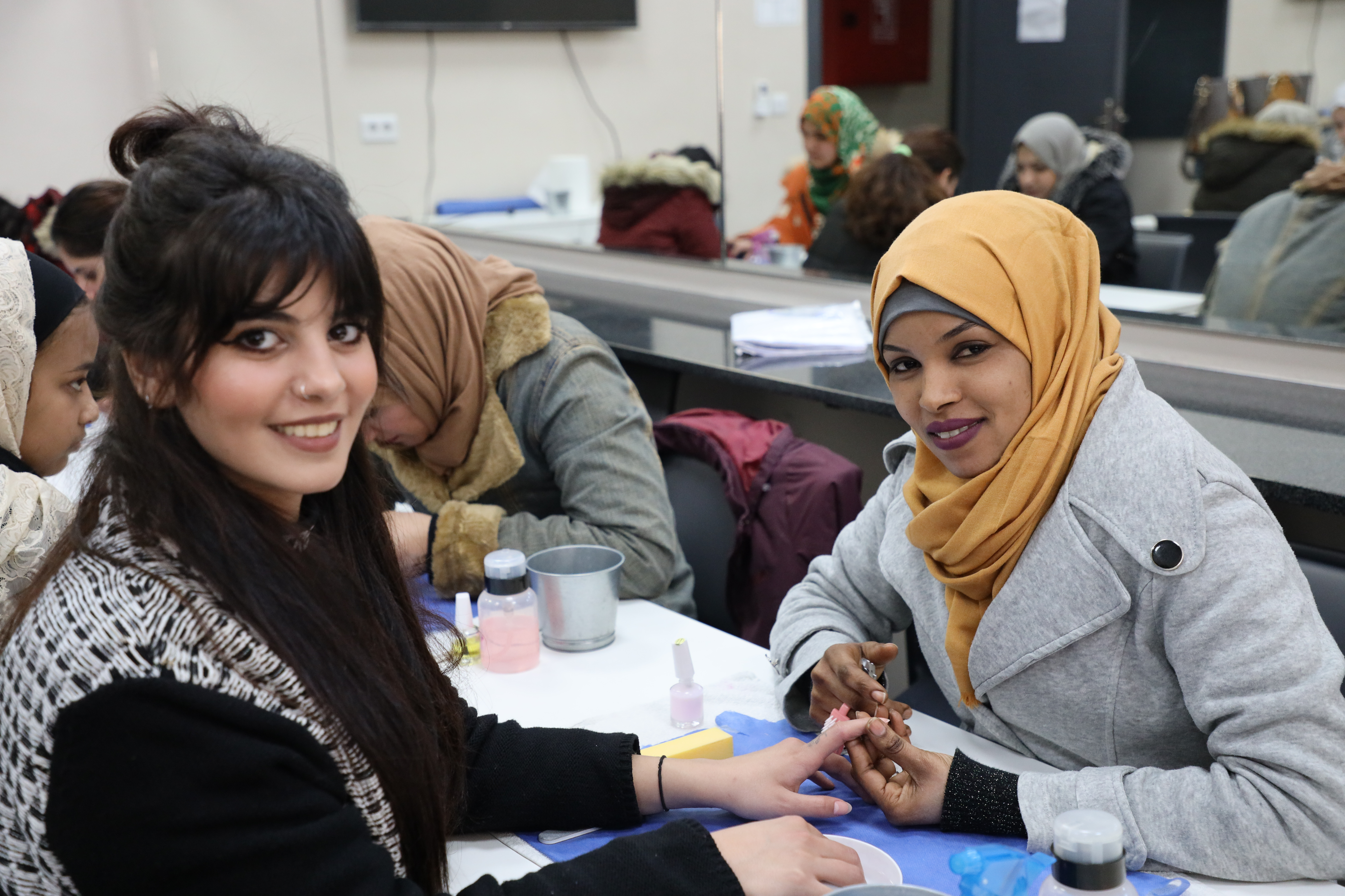 For the first month of the beauty course, students have been learning nail care. In future months they will move onto hair, makeup and skincare © UNHCRJordan