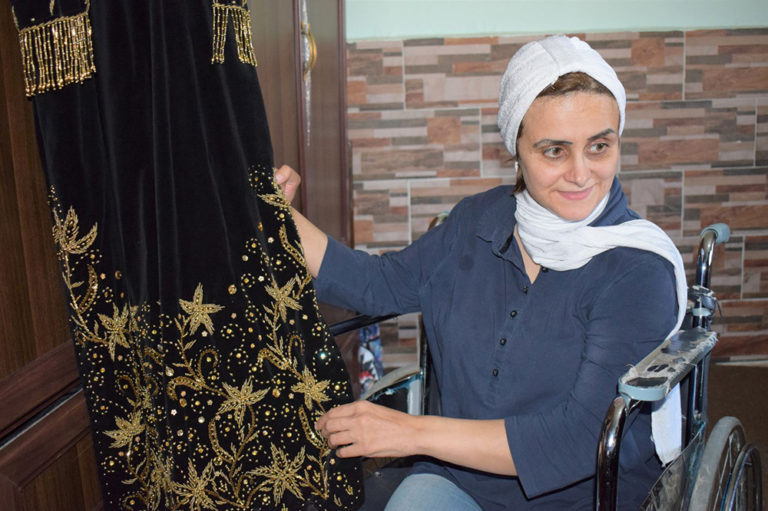 An accident several years ago left Yasmien in a wheelchair and with limited use of one of her hands.