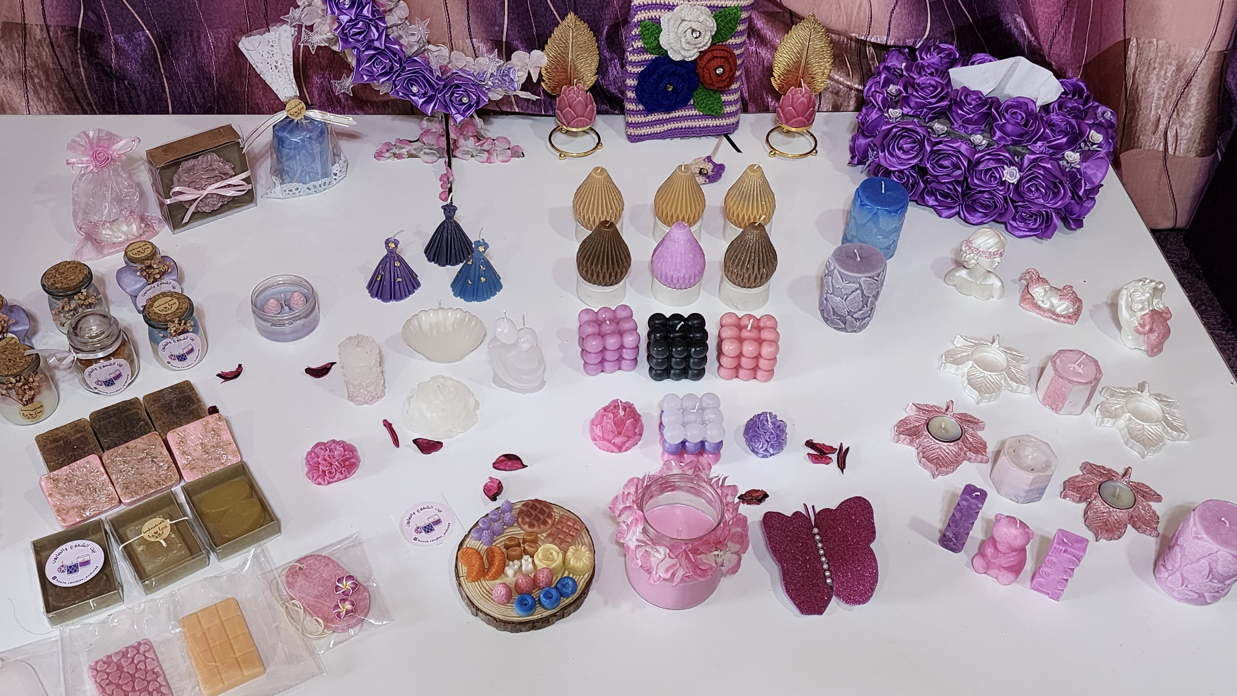 Samaher’s candle collection. © UNHCR/Roland Schönbauer