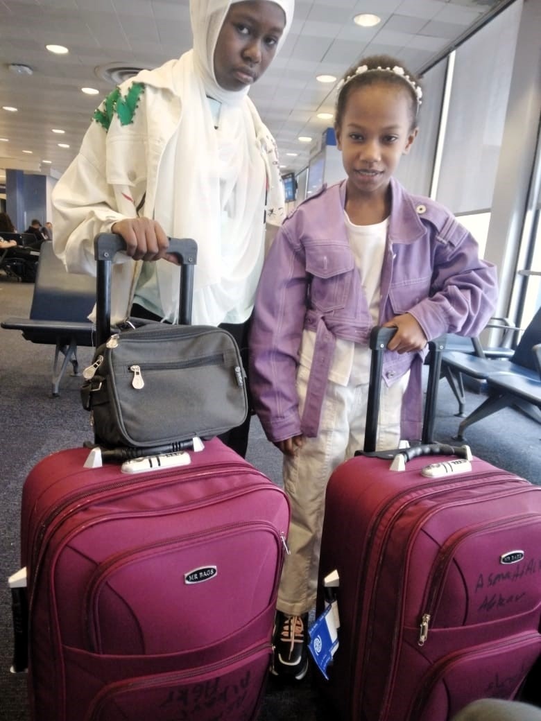 The daughters of Asma and Mohammad at the airport, ready to take on their new life in the United States. © Asma Abkar