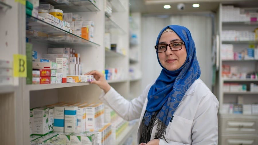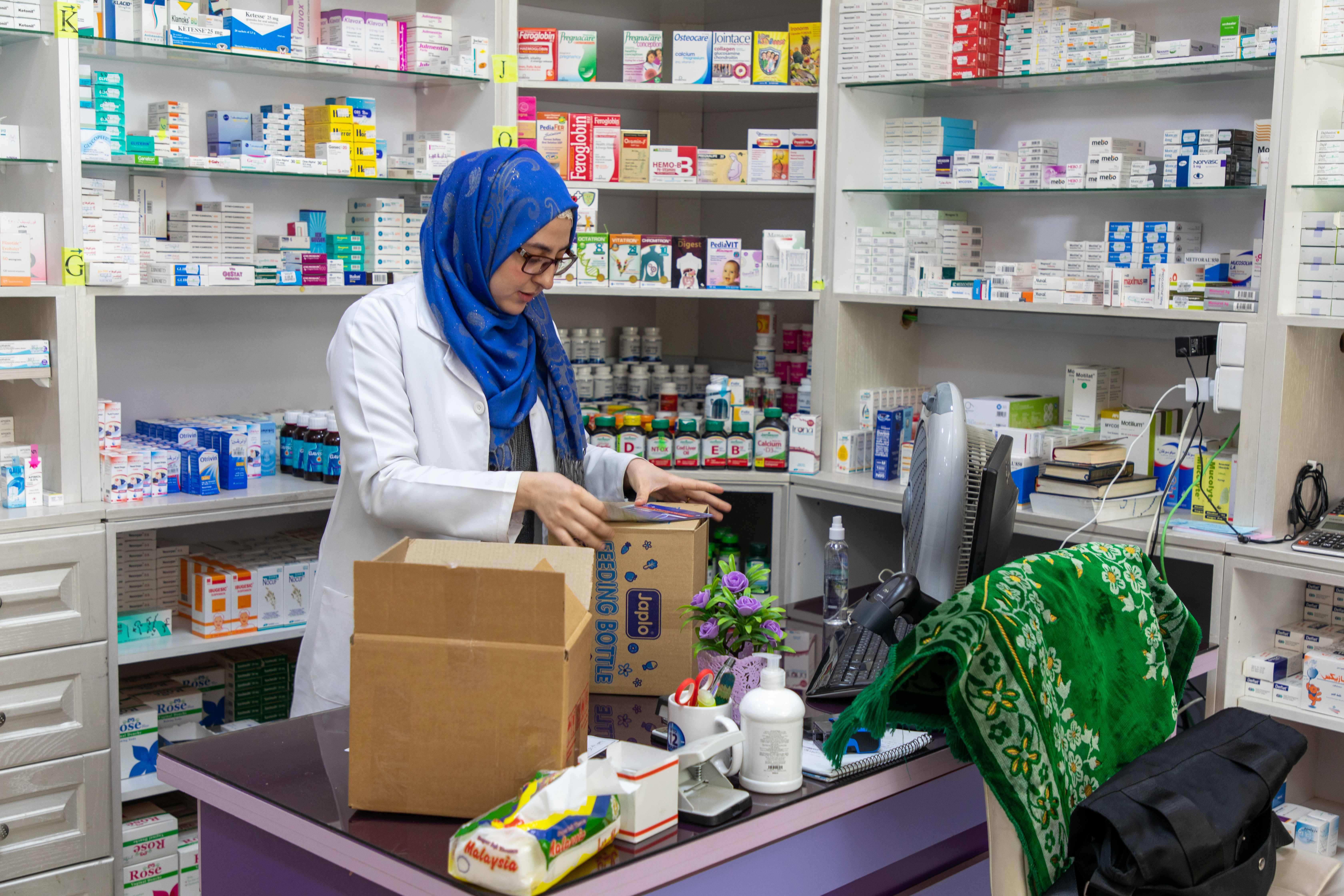 Most mornings, Salam al-Hariri wakes early to the sound of her 4-month-old daughter crying for attention. After feeding her and having a coffee with her husband, she walks the 10 minutes down the road to the local community pharmacy in Amman where she is a trainee.