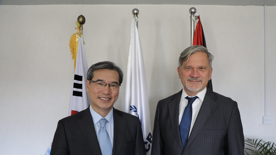 In the picture: H.E. Ambassador Dong-gi Kim, Ambassador of the Republic of Korea to Jordan, and Dominik Bartsch, UNHCR Representative to Jordan. © UNHCR/Meshal Elfayez