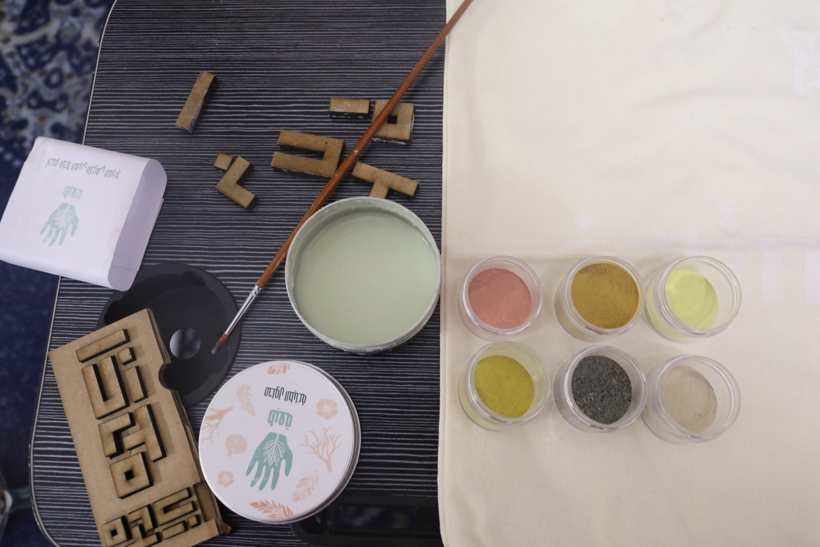 Her brand’s name, Tuba’a, originates from the 3D set of wooden kits in various shapes that Kolbahaar designed to print on tote bags using the natural colors and dyes she creates, which can be oil colors mixed with oil or acrylic colors combined with egg whites.