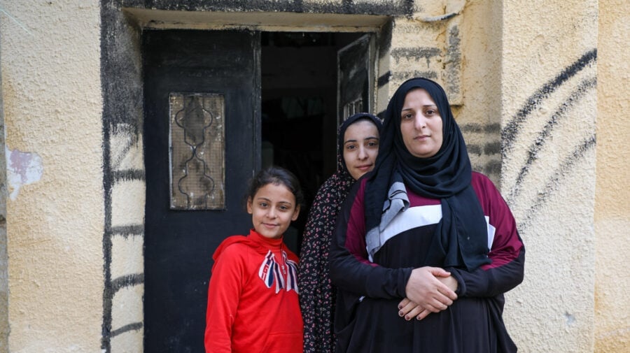 Huda stands with her two daughter Rahaf, 16 and Nagham, 9