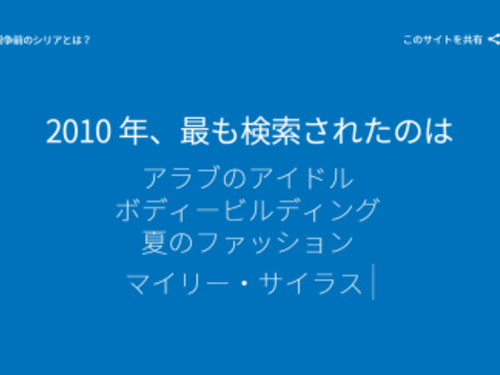 このウェブサイトは、UNHCRのデータやストーリー、Googleトレンド等のデータを活用し、世界の人々がシリア難民危機についてウェブで最も検索されている 5 つの質問への答えを探るプロジェクトです。