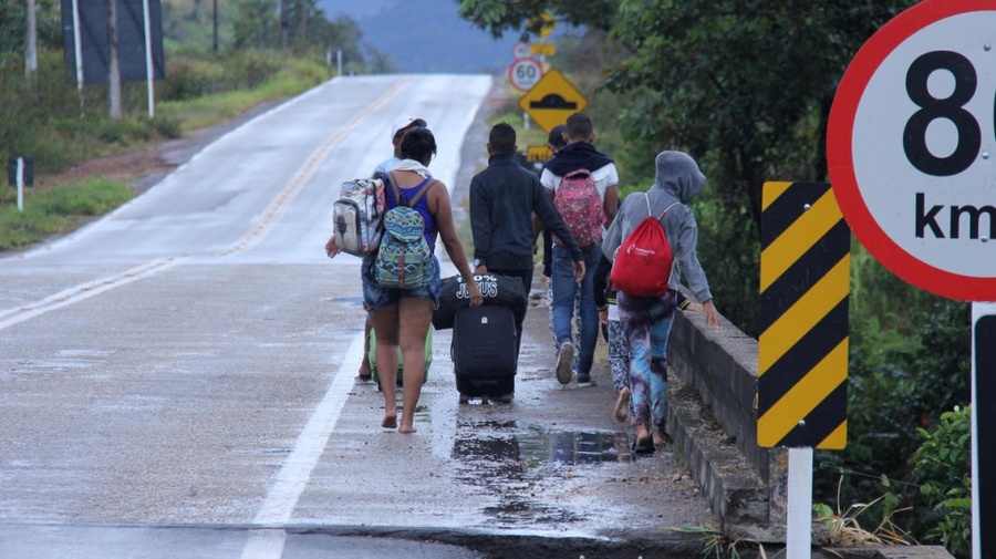 ベネズエラからブラジルに逃れてくる人々。公共交通機関を使うことができず、200キロもの距離を歩いて国境を渡る