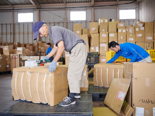 全国の店舗の“リサイクルBOX”で回収された衣料が難民支援の現場に届くまで、多くの人が関わっています。今回は、リサイクル衣料の選別、仕分け、梱包作業を担当しているスタッフの皆さんについてお伝えします。