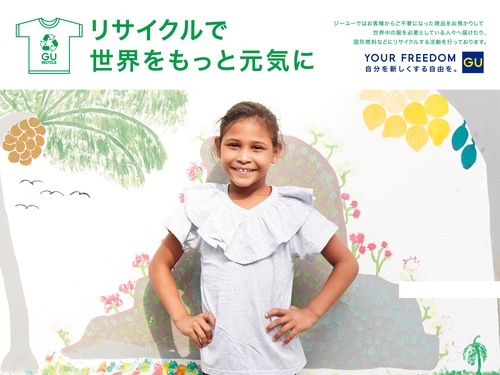 3月18日から4月25日まで、全国のジーユーの店舗では「リサイクルで世界をもっと元気に」を合言葉に、全商品リサイクル活動の回収強化キャンペーンを実施しています。