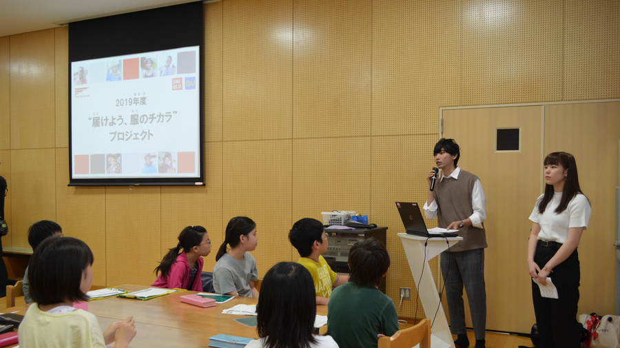 日本国内で子ども服を集め、難民支援の現場などに届けるこのプロジェクト。毎年6~7月にかけて、ユニクロやジーユーの社員が出張授業で “服のチカラ”や難民問題について伝え、子どもたちが中心となって校内や地域の人々にリサイクル服の回収を呼びかけています。