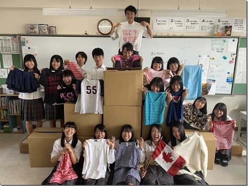 生徒一人ひとりが担当を持ち、学校や保育園などに電話をしてプロジェクトへの協力を依頼。自作のポスターや回収ボックスを届けました。幼稚園児や小学生にも分かりやすいようにふりがなをつけたり、高校生にはSNSを通じて協力を呼び掛けました。その取り組みは地域に徐々に広まり、SNSを見て学校に服を届けてくれた人もいました。