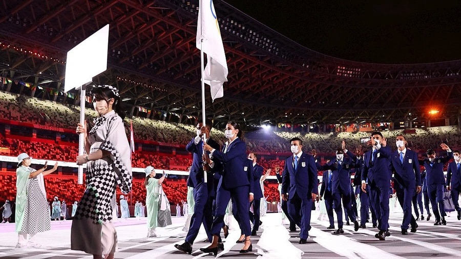シリア、南スーダン、イラン、アフガニスタンなど11カ国出身の代表から成る難民選手団は、オリンピック発祥の地として毎回最初に入場するギリシャに次いで、世界に向けて手を振りながら二番目に国立競技場に入場しました。