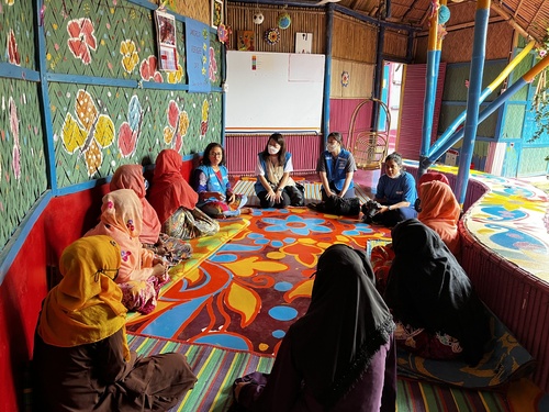 より脆弱な立場にある女性と少女に対する支援としては、キャンプ内に “安全なスペース”としての施設が設置され、困っていることを相談したり、悩みを共有し合ったり、情報交換などができるようになっています。またこの施設では、トレーニングを受けたカウンセラーのもと、ジェンダーに基づく暴力(GBV)の防止、こころのケアのためのカウンセリングや必要なサポートも強化されています。男性に対しても同様に、男性ボランティアが集まり、家庭内やキャンプでの課題やGBVの防止に向けた課題や解決策を話し合う場がつくられています。