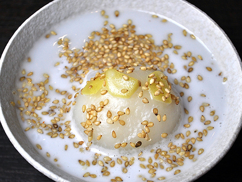 ベトナムにはココナッツミルクや南国のフルーツなどを使用した南国ならではのスイーツがたくさん。「ココナッツしょうが団子(490円)」は緑豆のあんとピリッと刺激的なしょうががのったお餅がココナッツミルクに浮かんだベトナムでも人気のスイーツです。甘すぎないあんとリッチなココナッツミルクの相性がぴったり!