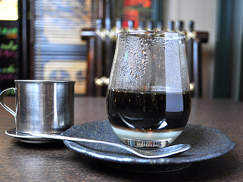 ブラジルに次いで世界第二位のコーヒー生産国のベトナムではコーヒーが生活の大事な一部になっています。コップの底に甘いコンデンスミルクをたっぷり入れ、その上に濃いコーヒーをドリップさせてかき混ぜながら好みで甘さを調節するのがベトナムスタイル。ポタ、ポタとコーヒーがゆっくりドリップされていく様子を眺める時間はとても贅沢に感じられます。