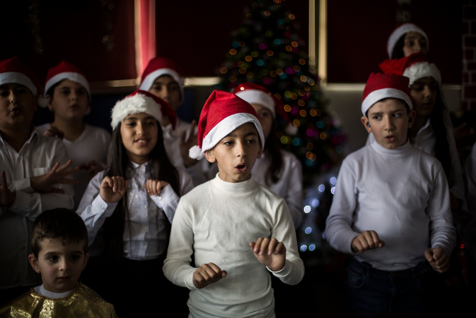 Theresa, 16, is an Iraqi refugee from Qaraqosh, near Mosul. She said that during the past three years in exile, Christmas was often a painful reminder of home and happier times, until she joined the choir this year. “The choir made me forget the pain of exile. Here, hand in hand, singing together, we feel happiness and peace.”