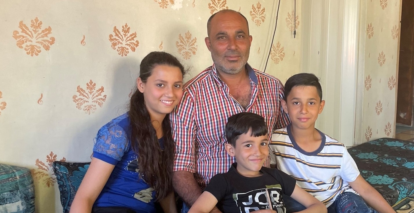 In 2013, Abdul Motalleb, Amina, and their three children, Riham, Lama, and Mohamad, fled to Lebanon and found refuge in the town of Dmit in Mount Lebanon's Chouf area. Their youngest son, Ahmad, was born in Lebanon. They live in a humble two-room house, but have a modest garden space where the children can play.